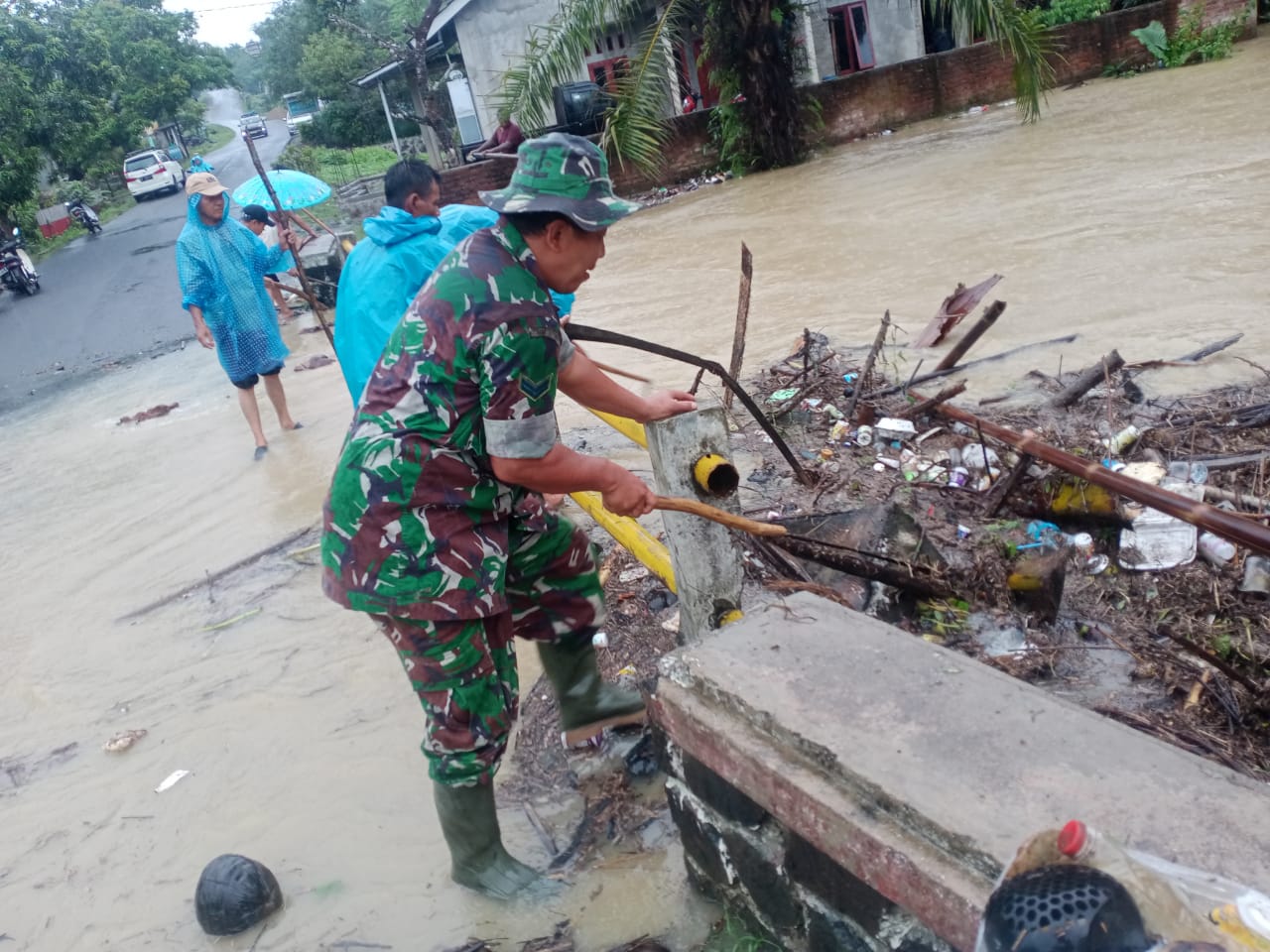 Koramil 0116/Cikeusik yang dipimpin langsung Danramil Kapten Inf. Mualif berinisiatif segera mengajak warga sekitar untuk melakukan pembersihan sampah yang menyumbat di bawah jembatan agar aliran bisa mengalir dan tidak meluap ke perkampungan dan jalan raya.