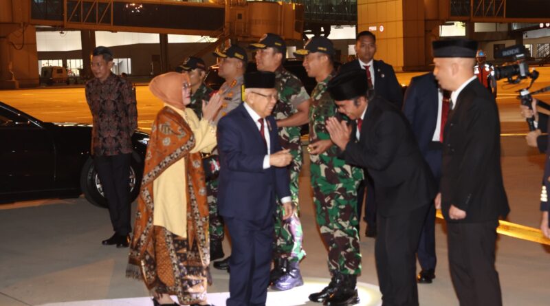 FAJARLAMPUNG.COM – Tangerang, Penjabat (Pj) Gubernur Banten Al Muktabar ikut melepas keberangkatan Wakil Presiden (Wapres) Ma’ruf Amin bersama Ibu Wury Ma’ruf Amin beserta rombongan ke Selandia Baru, yang berangkat dari Bandara Soekarno-Hatta, Tangerang menggunakan pesawat GA Boeing 777-300ER, Minggu (25/2/2024) malam.