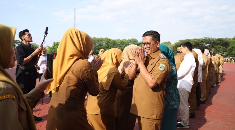 Usai apel, suasana hangat menyelimuti Lapangan Kantor Gubernur Banten. Gubernur Andra Soni didampingi Wakil Gubernur Achmad Dimyati Natakusumah dan Sekretaris Daerah Deden Apriandhi tampak bersalaman dengan para ASN sebagai bagian dari tradisi halalbihalal Idulfitri 1447 H.(lsi)