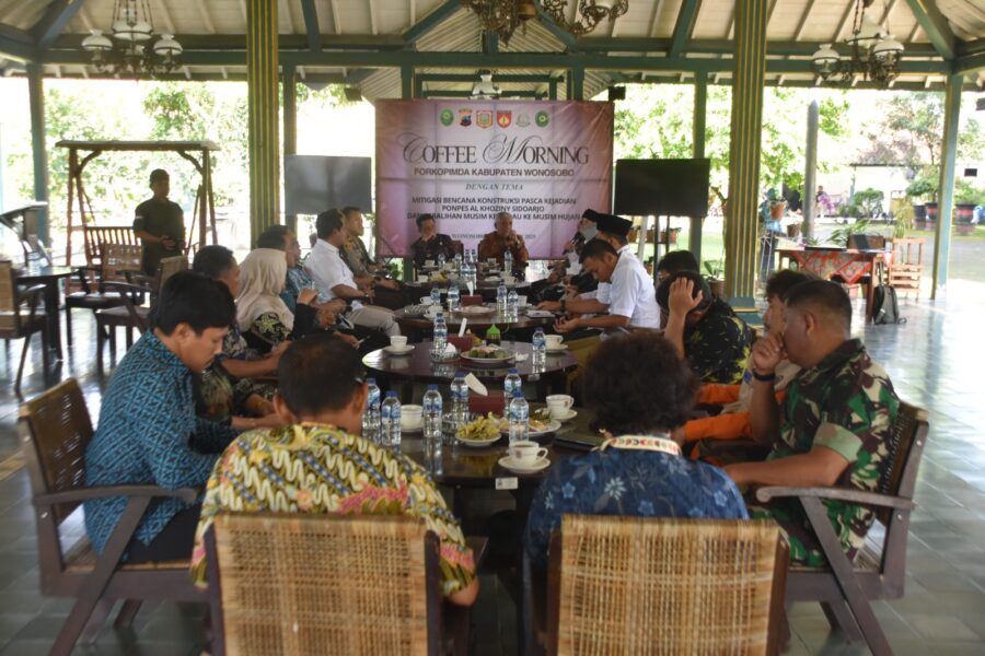 FAJARLAMPUNG.COM, Wonosobo – Pemkab Wonosobo menggelar acara coffee morning dengan tema Mitigasi Bencana Konstruksi Pasca Kejadian Ponpes Al-Khoziny Sidoarjo dan Peralihan Musim Kemarau ke Musim Penghujan. Kegiatan yang berlangsung hangat tersebut dihadiri oleh jajaran Forkopimda, perwakilan instansi terkait, serta para pengurus pondok pesantren (Ponpes) se-Kabupaten Wonosobo. Kamis (16/10/2025).