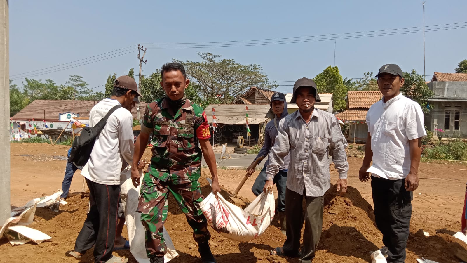 FAJARLAMPUNG.COM – Banten, Babinsa Koramil 0114/Cigeulis Kodim 0601/Pandeglang, Serda Yudi melaksanakan kegiatan Kerja bakti gotong royong Pembangunanan Gedung MUI Kecamatan Cigelis bersama masyarakat, Rabu (23/08/23)