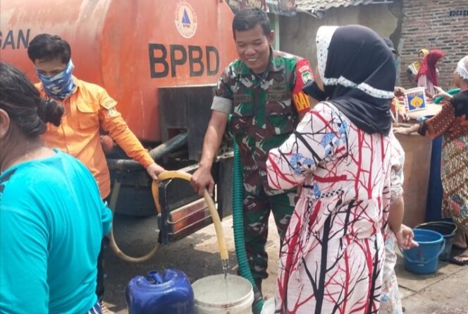 Babinsa Koramil 0602-01/Kota Serang Bantu Penyaluran Air Bersih Akibat Dampak El Nino