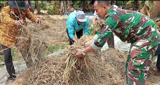 FAJARLAMPUNG.COM – Serang, Dalam rangka mendukung program ketahanan pangan, Babinsa Koramil 0602-15/ Baros Kodim 0602/Serang Pembantu Letnan Dua (Pelda) Osid, bersama PPL dan Kelompok Tani Mekar Tani melaksanakan praktek bersama pembuatan pupuk organik di Desa Padasuka Kecamatan Baros Kabupaten Serang Provinsi Banten , Selasa (15 Agustus 2023).