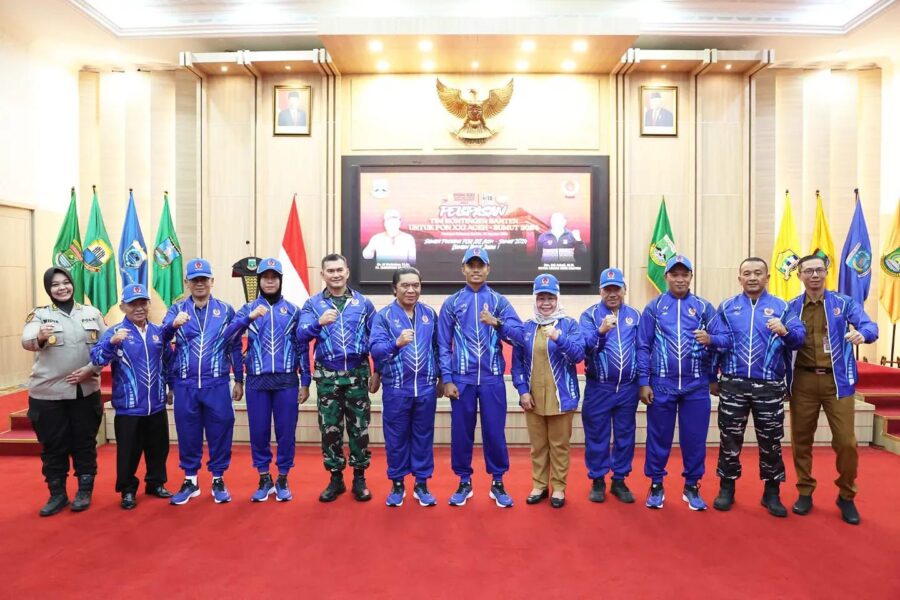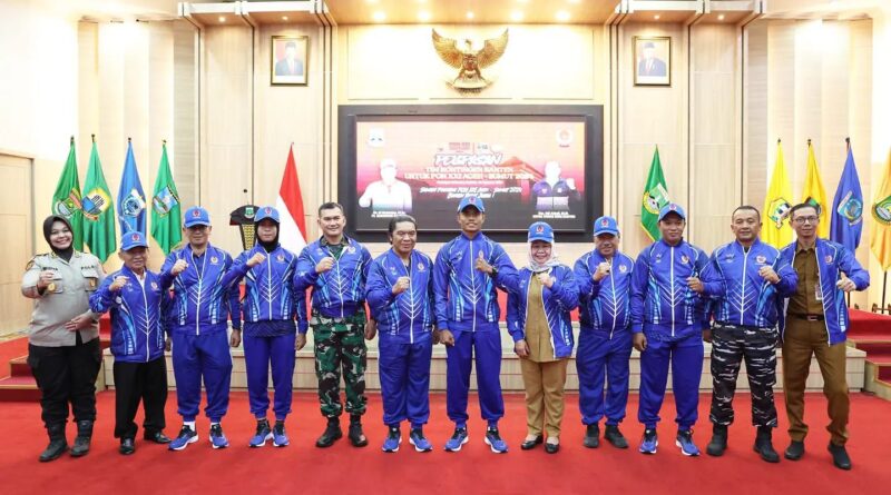 FAJARLAMPUNG.COM, Serang – Penjabat (Pj) Gubernur Banten Al Muktabar melepas Kontingen Provinsi Banten untuk Pekan Olahraga Nasional (PON) ke XXI Aceh-Sumatera Utara Tahun 2024 di Pendopo Gubernur Banten, KP3B Curug Kota Serang, Senin (26/8/2024). Harapkan doa dan dukungan masyarakat Banten untuk prestasi terbaik Kontingen Provinsi Banten.