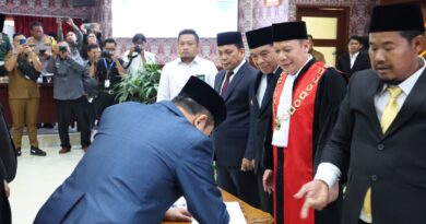 FAJARLAMPUNG.COM – Serang, Penjabat (Pj) Gubernur Banten Al Muktabar membuka secara resmi Sosialisasi dan Public Hearing Revisi Undang Undang Nomor 6 Tahun 2014 tentang Desa di Marbella Hotel Anyar Jl. Raya Karang Bolong Bandulu Kecamatan Anyar Kabupaten Serang, Jumat (26/4/2024) malam. Pembukaan itu ditandai dengan pemukulan gong yang disaksikan langsung oleh seluruh Kepala Desa se Provinsi Banten yang tergabung didalam Asosiasi Pemerintah Desa Seluruh Indonesia (APDESI) Provinsi Banten serta kumpulan delapan organisasi desa yang terabung didalam organisasi Desa Bersatu.