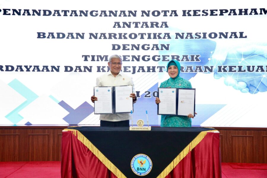 FAJARLAMPUNG.COM, Jakarta – Ketua Umum Tim Penggerak Pemberdayaan dan Kesejahteraan Keluarga (TP PKK) Tri Tito Karnavian menandatangani Nota Kesepahaman atau Memorandum of Understanding (MoU) dengan Kepala Badan Narkotika Nasional (BNN) Komisaris Jenderal Polisi Marthinus Hukom. Kerja sama tersebut mencakup upaya kedua belah pihak dalam mencegah penyebaran dan penyalahgunaan narkoba. Kegiatan ini berlangsung di Ruang Rapat Kantor BNN, Jakarta, Rabu (21/5/2025).