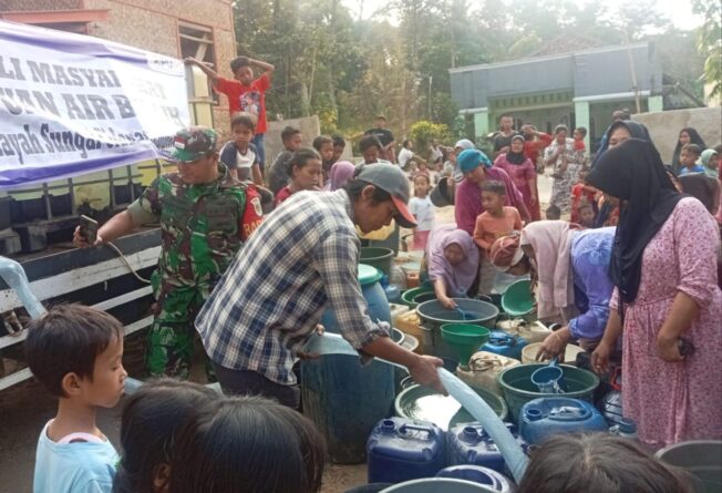 FAJARLAMPUNG.COM – Banten, Anggota Koramil 0102/Cadasari Kodim 0601/Pandeglang Sertu Risman Harahap Babinsa Desa Kaduela kecamatan Cadasari Pandeglang Banten hari ini, Kamis (07/09/2023) mendampingi pendistribusian bantuan air bersih dari PUPR Provinsi Banten Balai Besar Wilayah Sungai Cidanau Ciujung Cidurian, kepada warga Kampung Huni Gede RT. 07 RW. 03 desa Kaduela Kecamatan Cadasari.
