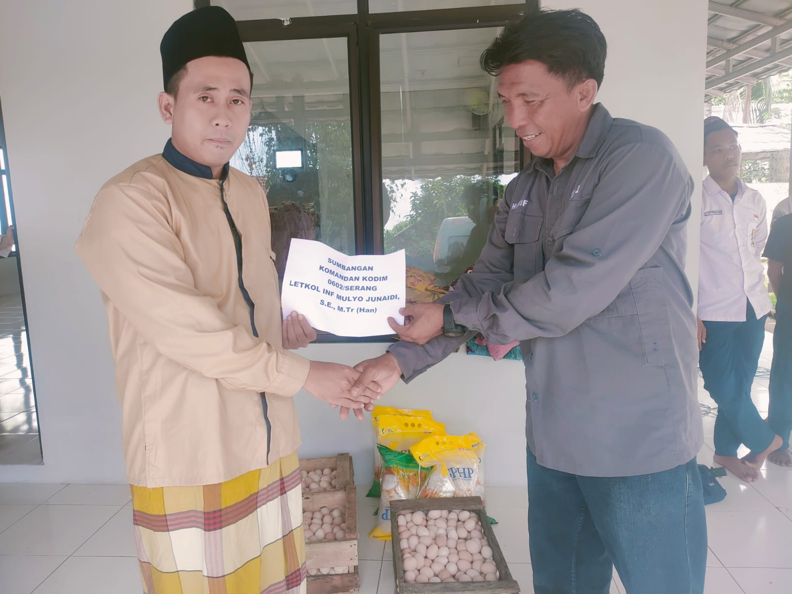 FAJARLAMPUNG.COM – Serang, Sebagai bentuk kepedulian kepada para santri yang sedang belajar ilmu agama, Komandan Kodim (Dandim) 0602/Serang Letnan Kolonel (Letkol) Inf Mulyo Junaidi, S.E., M.Tr (Han), memberikan bantuan sosial dalam bentuk beras dan telur ke Pondok Pesantren (Ponpes) Yatim Ash Shiraath, bertempat di Desa Lebak Wana Kecamatan Kramatwatu Kabupaten Serang Provinsi Banten, Rabu (22/11/2023).