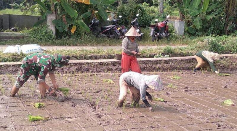Dukung Swasembada Pangan, Babinsa Kodim 0602/Serang Dampingi Poktan Jaya Makmur Tanam Padi