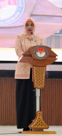 FAJARLAMPUNG.COM, Jatinangor – Ketua Dharma Wanita Persatuan (DWP) Kementerian Dalam Negeri (Kemendagri) Niken Tomsi Tohir berbicara soal pentingnya peran keluarga Aparatur Sipil Negara (ASN) dalam mewujudkan visi Indonesia Emas 2045. Ia menyebut, perjalanan seorang ASN tidak dapat dipisahkan dari sokongan keluarga yang solid.