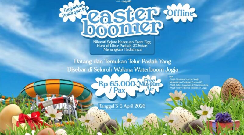 FAJARLAMPUNG.COM, YOGYAKARTA — Waterboom Jogja menggelar program spesial bertajuk “Easter Boomer” dalam rangka menyambut libur panjang Paskah 2026. Kegiatan ini berlangsung pada 3 hingga 5 April 2026 dengan menghadirkan beragam aktivitas hiburan dan promo tiket bagi pengunjung.