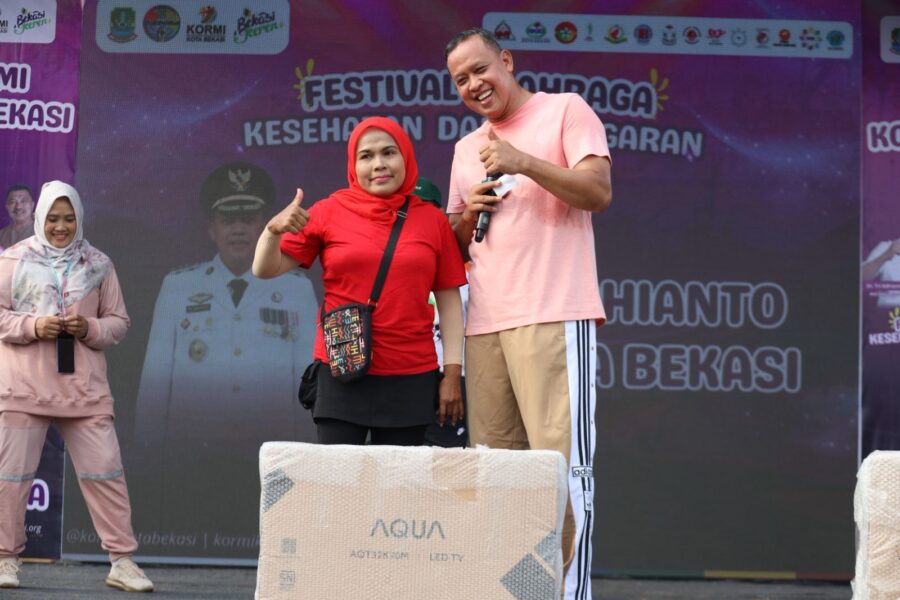 FAJARLAMPUNG.COM, Kota Bekasi — Wali Kota Bekasi, Tri Adhianto, membuka kegiatan Festival Olahraga Kesehatan dan Kebugaran yang berlangsung di Lapangan Sepak Bola Mini Rawalumbu, Minggu (19/10). Acara ini turut dihadiri Ketua Komite Olahraga Rekreasi Masyarakat Indonesia (KORMI) Kota Bekasi, Wiwiek Hargono Tri Adhianto, yang juga istri Wali Kota Bekasi.