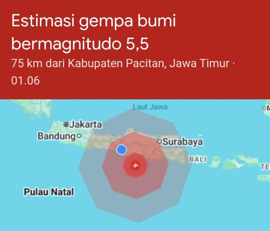 Gempa Berkekuatan 6,4 SR Berpusat di Selatan Pacitan Guncang Yogyakarta