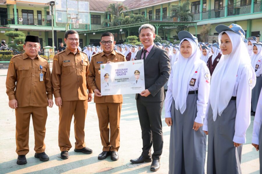 Gubernur menyerahkan secara simbolis rekening koran untuk SMK PGRI 3 dalam Program Sekolah Gratis. Perwakilan siswa menerima buku tabungan sekolah gratis.