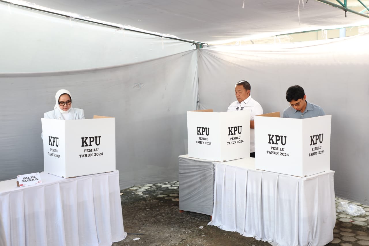FAJARLAMPUNG.COM – Bandar Lampung, Gubernur Lampung Arinal Djunaidi dan keluarga menyalurkan hak pilih dalam Pemilihan Umum (Pemilu) Tahun 2024, di Tempat Pemungutan Suara (TPS) 22, Kelurahan Sepang Jaya Kecamatan Labuhan Ratu, Bandar Lampung, (14/02/2024).
