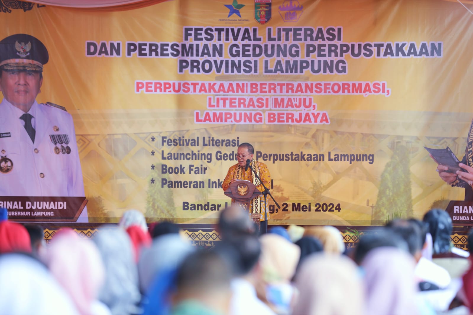 Arinal menjelaskan Lampung dengan kekayaan alam dan keberagaman budayanya, memiliki potensi besar untuk menjadi pusat literasi yang maju dan berjaya.
