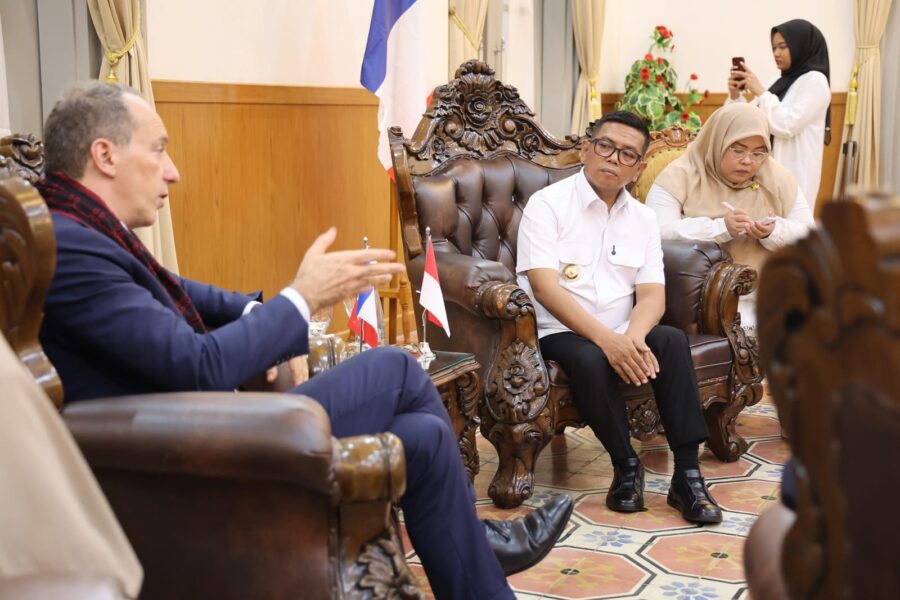 FAJARLAMPUNG.COM, Serang – Gubernur Banten Andra Soni menerima kunjungan Duta Besar Prancis untuk Indonesia, Fabien Penone, di Gedung Negara Provinsi Banten, Kota Serang, Rabu (12/11/2025). Pertemuan ini berfokus pada penguatan kerja sama di sektor ekonomi, investasi, industri, pendidikan vokasi, dan pariwisata.