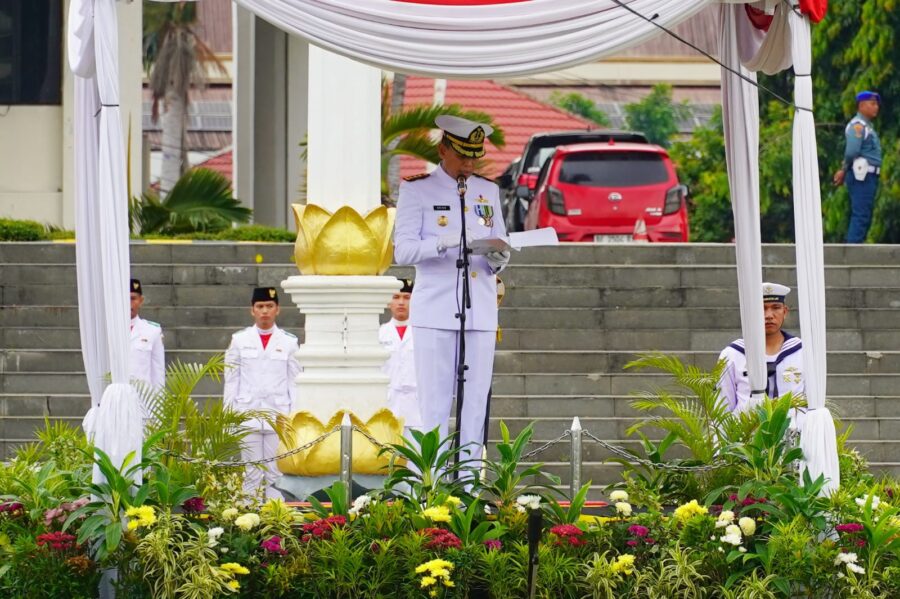 “Hari ini, di bawah langit Indonesia yang merdeka, kita menundukkan kepala penuh hormat mengenang para pahlawan bangsa. Mereka bukan sekadar nama yang terukir di batu nisan, melainkan cahaya yang menerangi jalan kita hingga hari ini,” ucapnya.