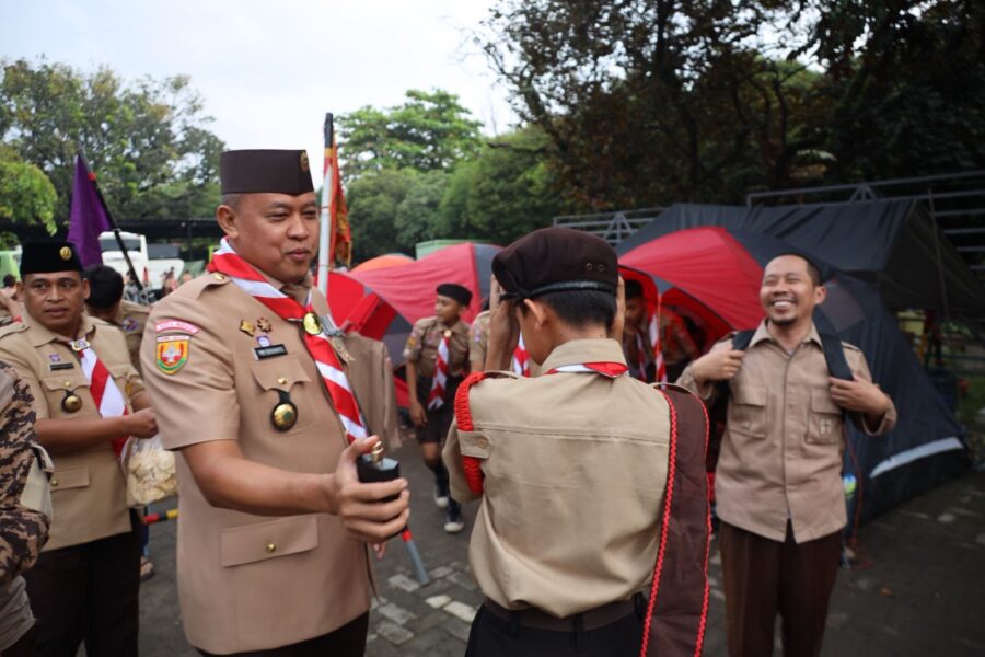 FAJARLAMPUNG.COM, Kota Bekasi – Dalam rangka peringatan Hari Pramuka ke-64 tingkat Kota Bekasi, ratusan siswa-siswi dari berbagai sekolah di Kota Bekasi mengikuti kegiatan perkemahan di area Plaza Pemerintah Kota Bekasi. Suasana menjadi semakin unik dan hangat saat Wali Kota Bekasi, Tri Adhianto, hadir pada pagi hari membawa parfum untuk disemprotkan kepada anak-anak Pramuka yang bermalam di lokasi.