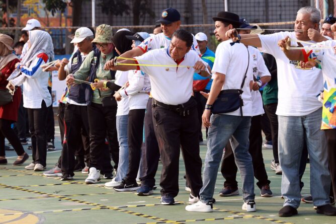 FAJARLAMPUNG.COM – Serang, Pemerintah Provinsi (Pemprov) Banten dan Komite Olahraga Rekreasi Masyarakat Indonesia (Kormi) Provinsi Banten berhasil pecahkan rekor Bermain Ketapel oleh Peserta Terbanyak. Penghargaan Museum Rekor Dunia Indonesia tersebut diserahkan Customer Relation Manager Museum Rekor Indonesia (Muri) Lutfi Syah Pradana kepada Penjabat (Pj) Sekretaris Daerah Provinsi Banten, Virgojanti, sesaat setelah Rekor Dunia Bermain Ketapel dengan peserta terbanyak terpecahkan, di Lapangan Pancaniti, KP3B, Curug Kota Serang, Minggu (8/10/2023)