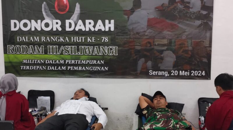 FAJARLAMPUNG.COM – Kota Serang, Dalam rangka memperingati Hari Ulang Tahun (HUT) Kodam III/Siliwangi ke-78, Komando Distrik Militer (Kodim) 0602/Serang menggelar bhakti sosial donor darah yang diadakan di Aula Sultan Ageng Tirtayasa Makodim 0602/Serang Jl. Raya Serang- Pandeglang Km. 4,5, Kelurahan Tembong, Kecamatan Cipocok Jaya, Senin, (20/05/2024).