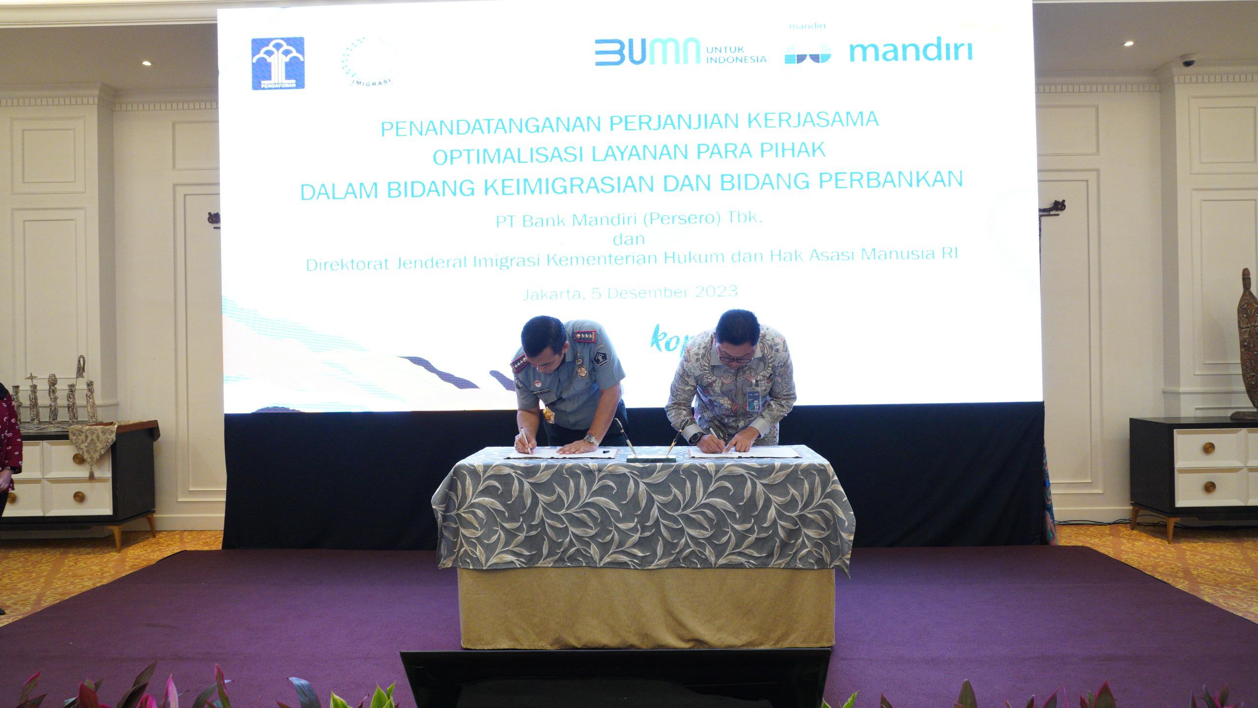 “Kerjasama ini juga menjawab 2 (dua) dari 4 (empat) tugas yang diberikan Presiden pada saat menunjuk saya untuk menjabat sebagai Dirjen Imigrasi yaitu golden visa dan digitalisasi layanan keimigrasian,” jelas Direktur Jenderal Imigrasi, Silmy Karim pada acara penandatanganan PKS bersama Direktur Utama Bank Mandiri, Darmawan Junaidi pada Selasa (05/12/2023) di Mandiri Club, Jakarta Selatan.