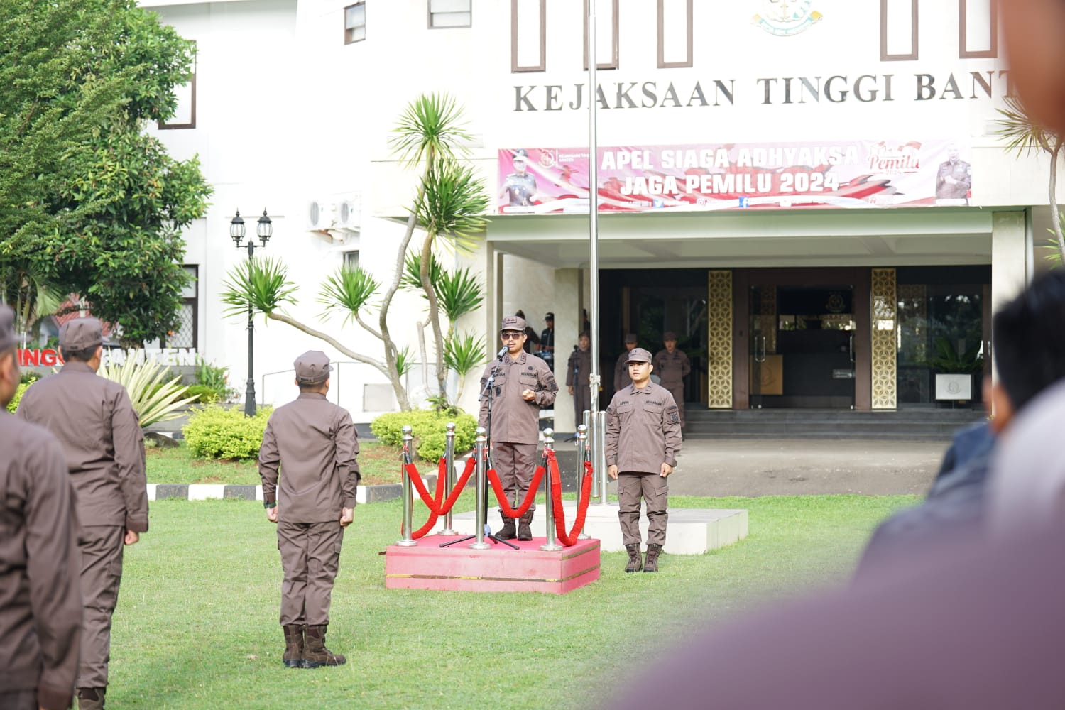 FAJARLAMPUNG.COM – Serang, Senin 5 Febuari 2024, Kejaksaan Tinggi Banten melaksanakan Apel Siaga Adhyaksa Jaga Pemilu tahun 2024, yang dipimpin langsung oleh Kepala Kejaksaan Tinggi Banten Dr. Didik Farkhan Alisyahdi yang diikuti oleh Wakil Kepala Kejaksaan Tinggi Banten Ahelya Abustam, para Asisten dan seluruh pegawai Kejati Banten, bertempat di lapangan upacara Kejaksaan Tinggi Banten.