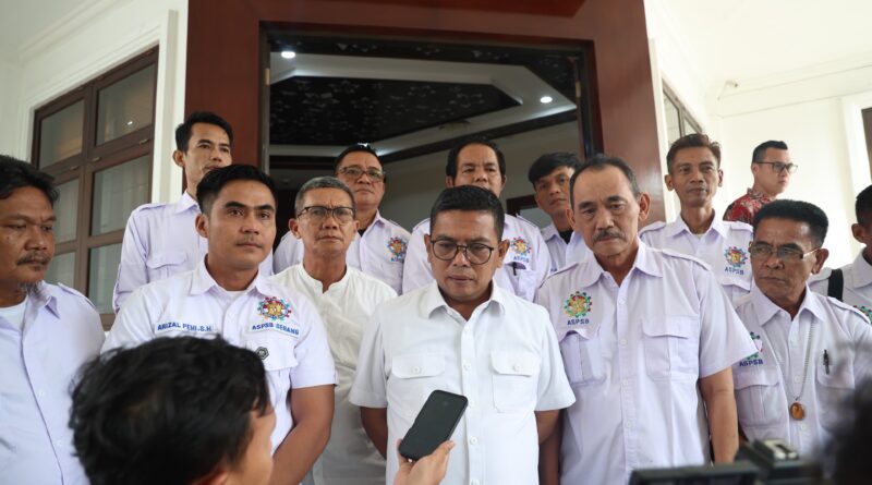 “Saya menerima silaturahmi dari aliansi serikat pekerja, serikat buruh Kabupaten Serang. Pertama, terkait dengan kegiatan peringatan Hari Buruh tahun ini yang Insya Allah akan dilaksanakan di dua tempat,” ungkap Andra Soni.