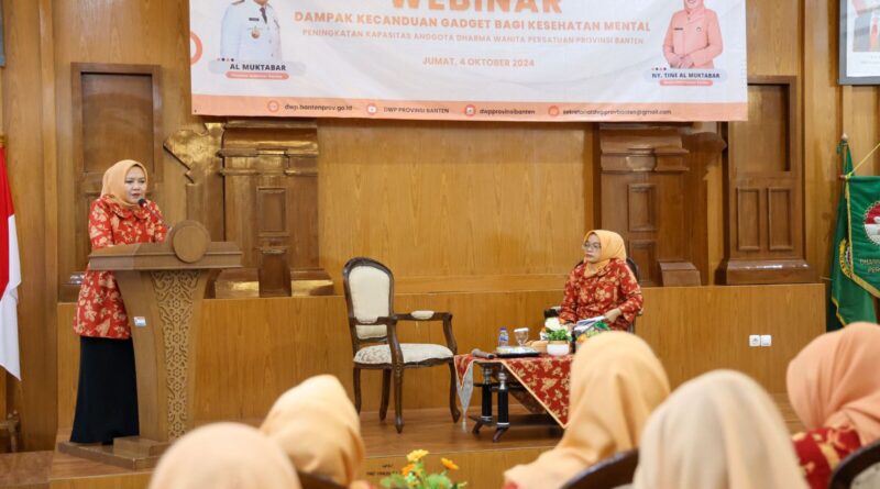 “Anak-anak merupakan salah satu aset bangsa untuk penerus bangsa dalam mengawal Indonesia Emas 2045,” ungkap Tine Al Muktabar. Usai membuka Webinar Dampak Kecanduan Gadget Bagi Kesehatan Mental yang digelar DWP Provinsi Banten secara virtual di Gedung Negara Provinsi Banten, Jl Brigjen KH Syam’un No.5 Kota Serang, Jumat (4/10/2024).
