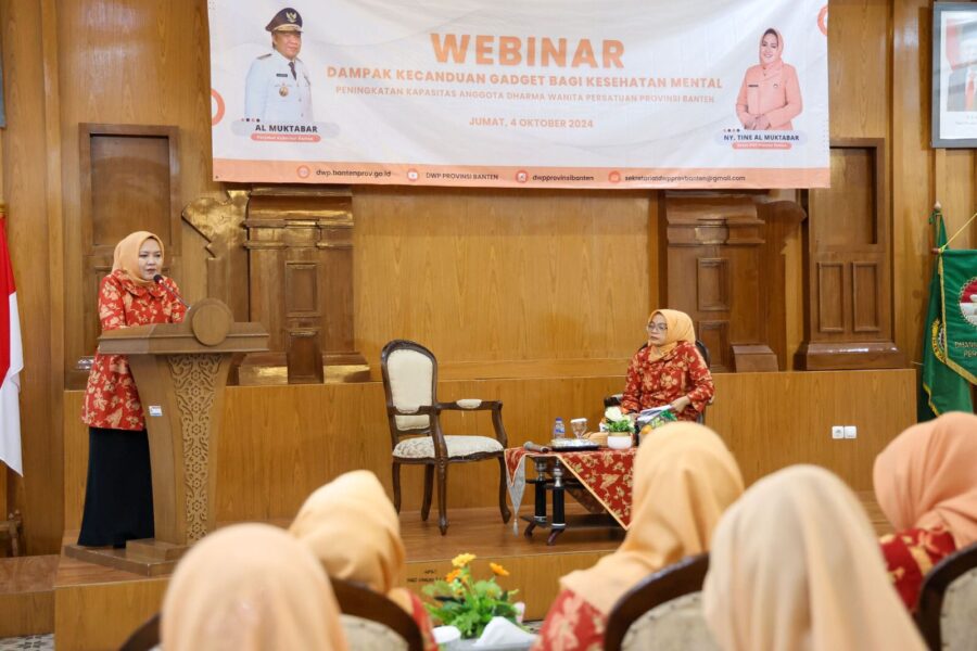 “Anak-anak merupakan salah satu aset bangsa untuk penerus bangsa dalam mengawal Indonesia Emas 2045,” ungkap Tine Al Muktabar. Usai membuka Webinar Dampak Kecanduan Gadget Bagi Kesehatan Mental yang digelar DWP Provinsi Banten secara virtual di Gedung Negara Provinsi Banten, Jl Brigjen KH Syam’un No.5 Kota Serang, Jumat (4/10/2024).
