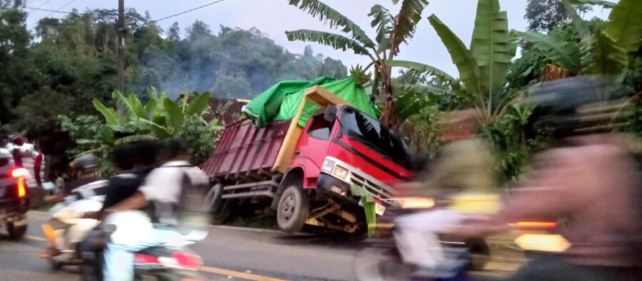 “Sampai di tanjakan Jalan lintas AMD truk tidak kuat menanjak, telat over perseneleng hingga selip dan mobil akhirnya tergelincir karena berat mengakibatkan mundur akhirnya kami banting stir kekiri pak..!,”kata Irpan supir truk kepada wartawan, Selasa (10/02/2026).