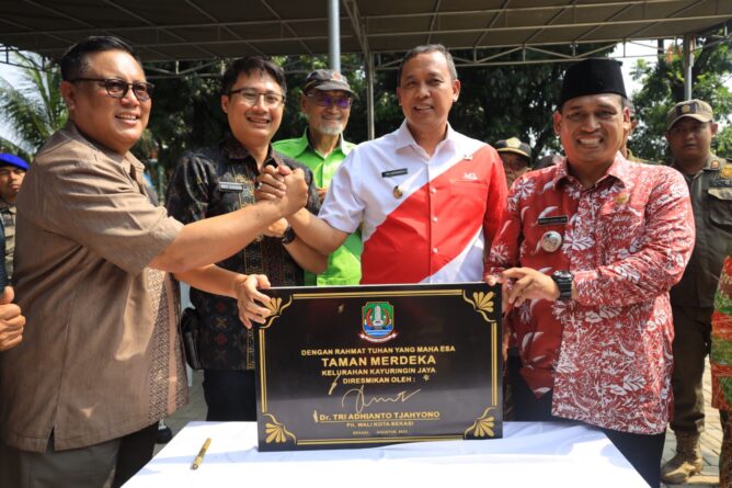 FAJARLAMPUNG.COM – Kota Bekasi, Pemerintah Kota Bekasi terus membangun ruang terbuka hijau yang bisa dimanfaatkan warga dalam beraktivitas. Siang ini, Kamis (10/08) Plt. Wali Kota Bekasi kembali meresmikan 4 taman baru di wilayah Kecamatan Bekasi Selatan dan Kecamatan Bantargebang.