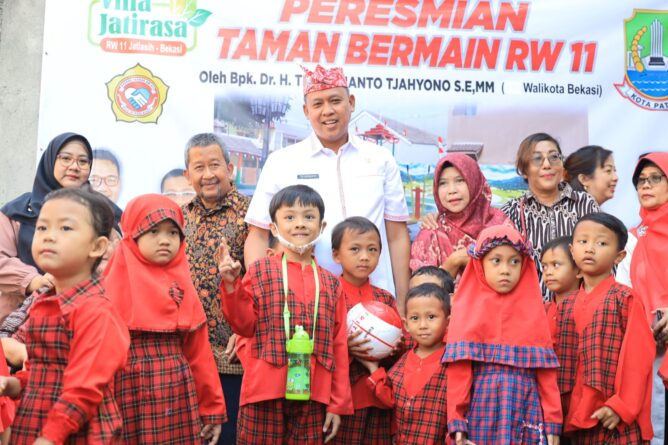 FAJARLAMPUNG.COM – Kota Bekasi, Sesuai dengan yang sudah dikemukakan Wali Kota Bekasi, Tri Adhianto sebelumnya bahwa beliau merencanakan pembangunan 100 taman di Kota Bekasi, maka pada Kamis (24/08), Tri Adhianto kembali meresmikan dua taman di Kota Bekasi, yakni di wilayah Kecamatan Jatiasih, yang meliputi Taman di RW 11 Kelurahan Jatisari, dan Taman RW 11, Kelurahan Jatiasih.