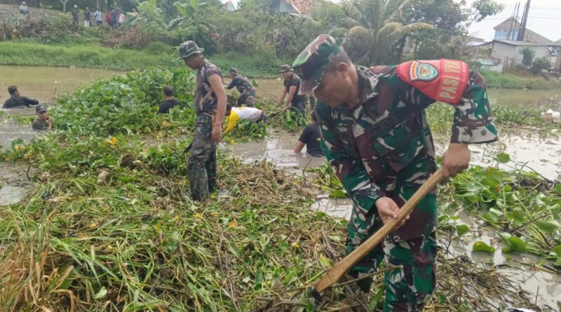 Kodim 0602/Serang Bersama DPUPR Kabupaten Serang dan Komunitas Peduli Lingkungan Bersihkan Sungai Ciwaka Pontang