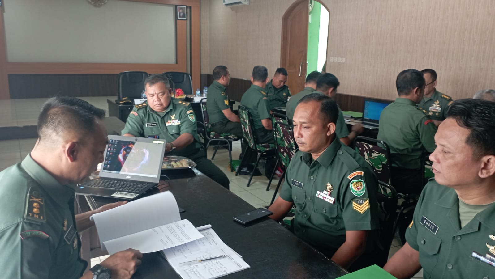 Kemudian, Tim langsung menuju ruang data untuk melakukan pemeriksaan seluruh produk kerja Kodim 0602/Serang yang telah dipersiapkan sebelumnya oleh Staf Makodim.
