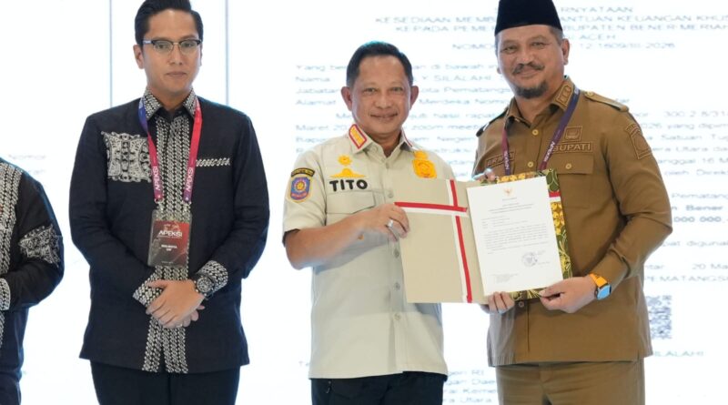 FAJARLAMPUNG.COM, Banda Aceh – Menteri Dalam Negeri (Mendagri) selaku Ketua Satuan Tugas (Kasatgas) Percepatan Rehabilitasi dan Rekonstruksi (PRR) Pascabencana Wilayah Sumatera Muhammad Tito Karnavian menyaksikan penyerahan Surat Pernyataan Kesediaan Memberikan Bantuan Keuangan Khusus oleh Pemerintah Kota Medan kepada Pemerintah Kabupaten Aceh Tamiang. Selain itu, penyerahan juga dilakukan oleh Pemerintah Kota Pematangsiantar kepada Pemerintah Kabupaten Bener Meriah.