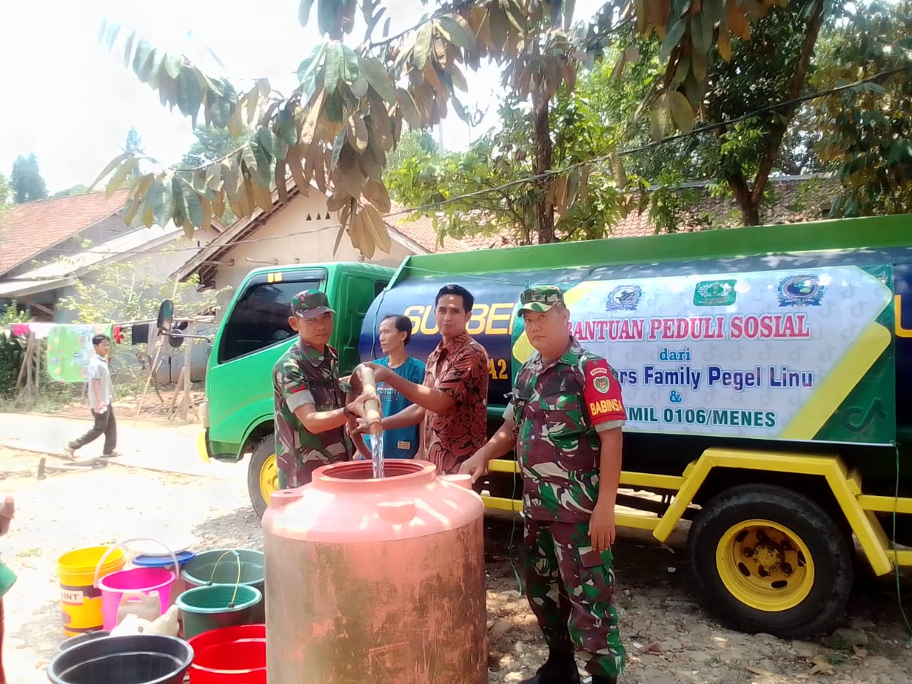 Koramil 0106/Menes, Salurkan Bantuan Air Bersih Dari Komunitas Tiktoker