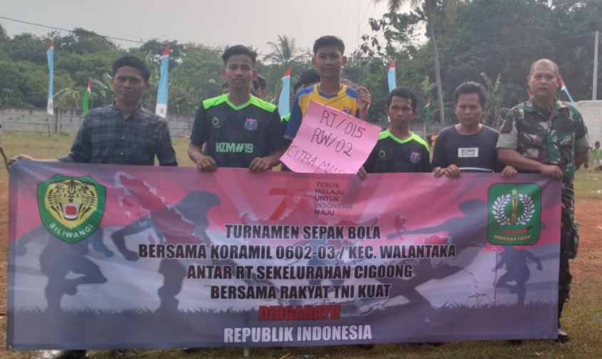 FAJARLAMPUNG.COM – Serang, Dalam rangka memeriahkan Hari Ulang Tahun (HUT) Republik Indonesia (RI) Ke-78 Tahun 2023, Koramil 0602-03/Walantaka Kodim 0602/Serang bekerjasama dengan Karang Taruna Kelurahan Cigoong, mengelar kegiatan olahraga pertandingan Sepak Bola Mini Soccer, bertempat di Lapangan Bola Linkungan Kelurahan Cigoong Kecamatan Walantaka Kota Serang Provinsi Banten, Rabu (09/08/2023).