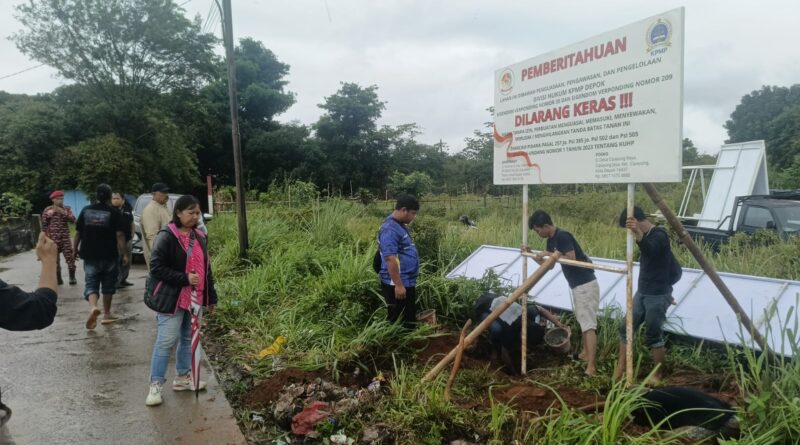 FAJARLAMPUNG.COM, Depok – Komando Pejuang Merah Putih (KPMP) melakukan pemasangan papan pemberitahuan kepemilikan lahan di kawasan Cipayung Jaya, Kota Depok, pada Rabu (21/1/2026). Aksi tersebut merupakan bentuk penegasan klaim hukum atas lahan seluas ratusan hektare yang dinyatakan masih menjadi milik sah para ahli waris.