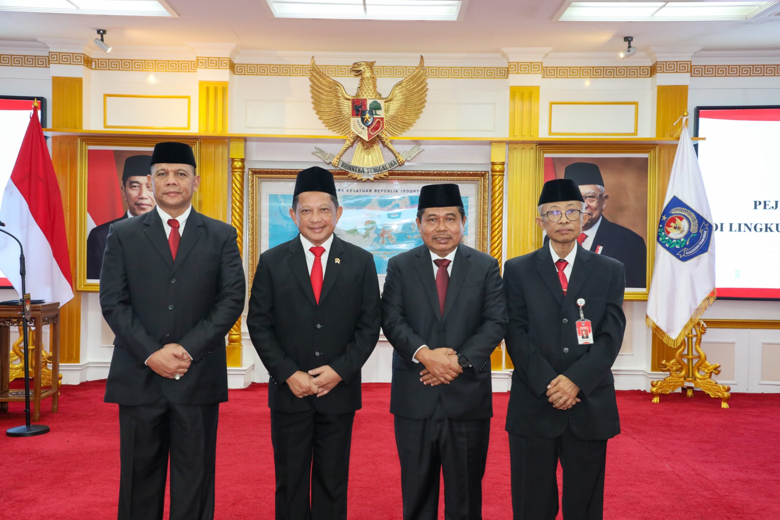 Pelantikan berlangsung di Ruang Sidang Utama (RSU) Kantor Pusat Kementerian Dalam Negeri (Kemendagri), Jakarta, Senin (12/2/2024).