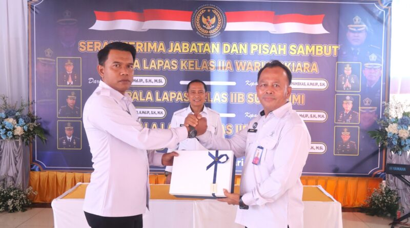 FAJARLAMPUNG.COM, Sukabumi – Lapas kelas llB Sukabumi kantor wilayah Direktorat jenderal pemasyarakatan. Jawa Barat telah melaksanakan Serah Terima Jabatan (Sertijab) Kepala Lapas Kelas IIB Sukabumi, yang bersamaan dengan pergantian Kepala Lapas Kelas IIA Warungkiara dan Kepala Lapas Kelas IIB Cianjur. Sabtu (25/1/2025) di Gedung Aula Lapas Kelas IIA Warungkiara