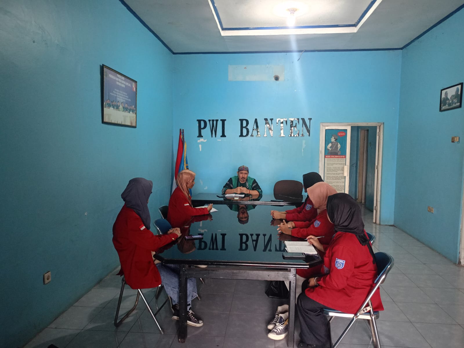 “Saya atas nama Ketua PWI Banten mengucapkan selamat datang buat adik – adik mahasiswi dari Uniba. Pak Ketua sebenarnya ingin menerima langsung, akan tetapi karena beliau ada kesibukan, maka dengan berat hati menugaskan saya dan Wakil Ketua untuk menerima, kami jelaskan jika keberadaan PWI salah satunya adalah untuk meningkatkan sumber daya manusia wartawan, sehingga para wartawan tidak tersandung masalah ketika melaksanakan tugas jurnalistik sehari hari,”kata Fahdi, ketika berbincang – bincang dengan perwakilan mahasiswi Uniba, di kantor PWI Banten, Selasa( 07/05/2024).