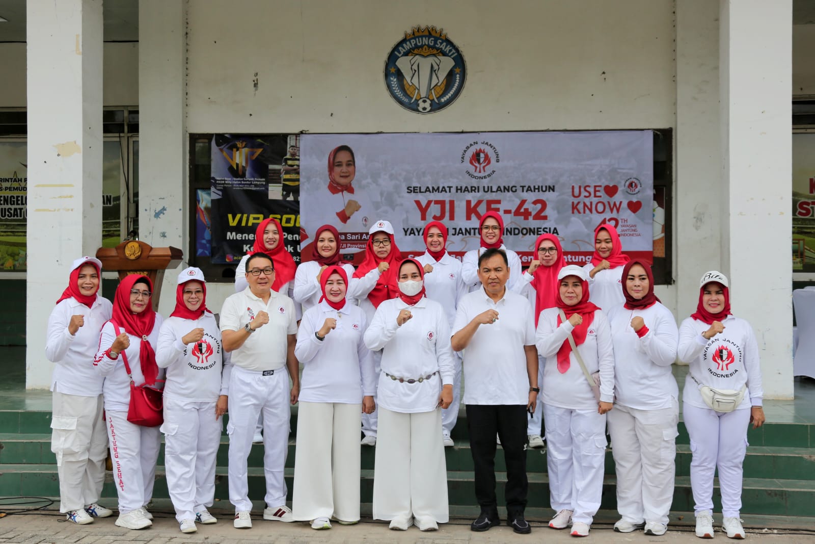 FAJARLAMPUNG.COM – BANDARLAMPUNG, Wakil Ketua Bidang Pengembangan Dana Yayasan Jantung Indonesia (YJI) Cabang Lampung Mamiyani Fahrizal, disaksikan Ketua YJI Cabang Lampung Ibu Riana Sari Arinal, mengukuhkan beberapa Klub Jantung Sehat (KJS) baru di Lapangan PKOR Way Halim, Bandarlampung, Sabtu (11/11/2023). Pengukuhan ini dilakukan dalam rangkaian HUT YJI ke-42.