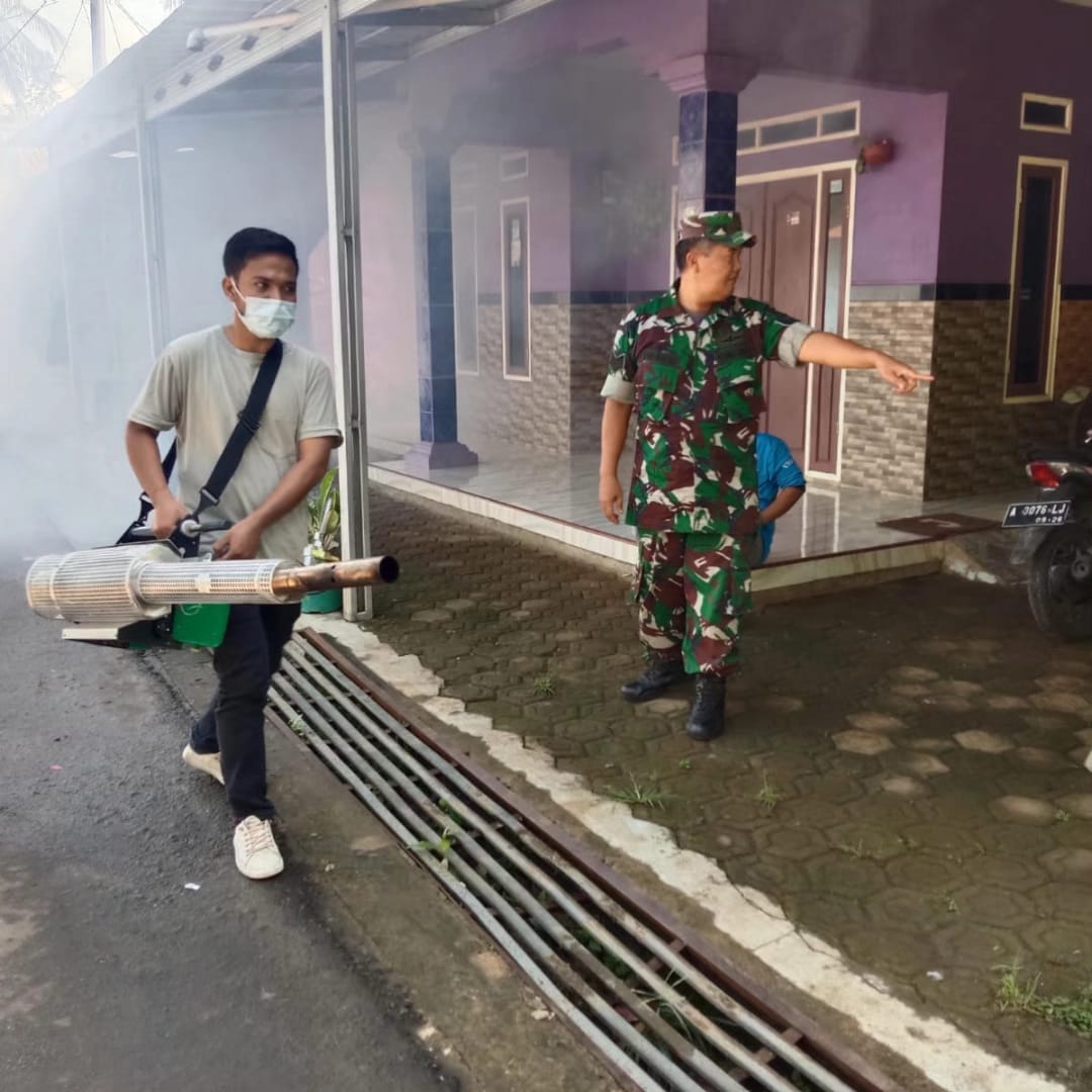 Maraknya Kasus DBD, Koramil 0106/Menes Bersama Petugas Kesehatan, Lakukan Fogging