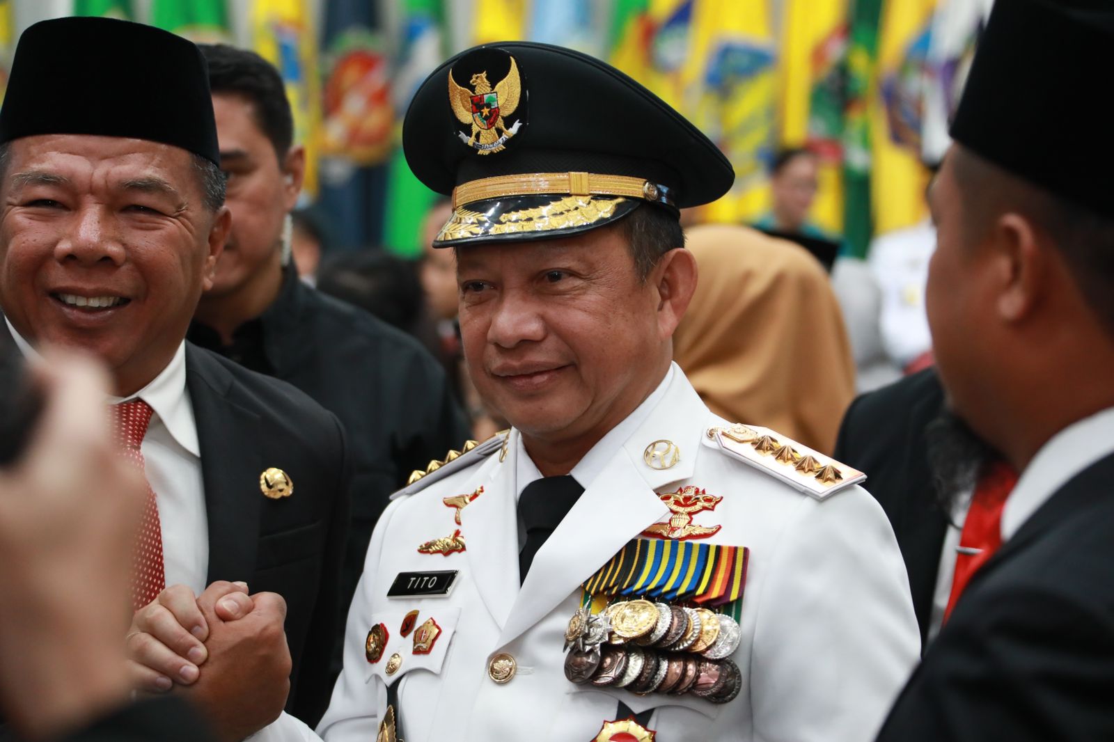 Adapun 4 purnawirawan TNI/Polri yang dilantik pada hari ini yaitu Pj. Gubernur Sumatera Utara (Sumut) Mayjen TNI (Purn) Hassanudin, Pj. Gubernur Jawa Tengah Komjen Pol (Purn) Nana Sudjana, Pj. Gubernur Bali Irjen Pol (Purn) Sang Made Mahendra Jaya, dan Pj. Gubernur Sulawesi Tenggara (Sultra) Komjen Pol (Purn) Andap Budhi Revianto.