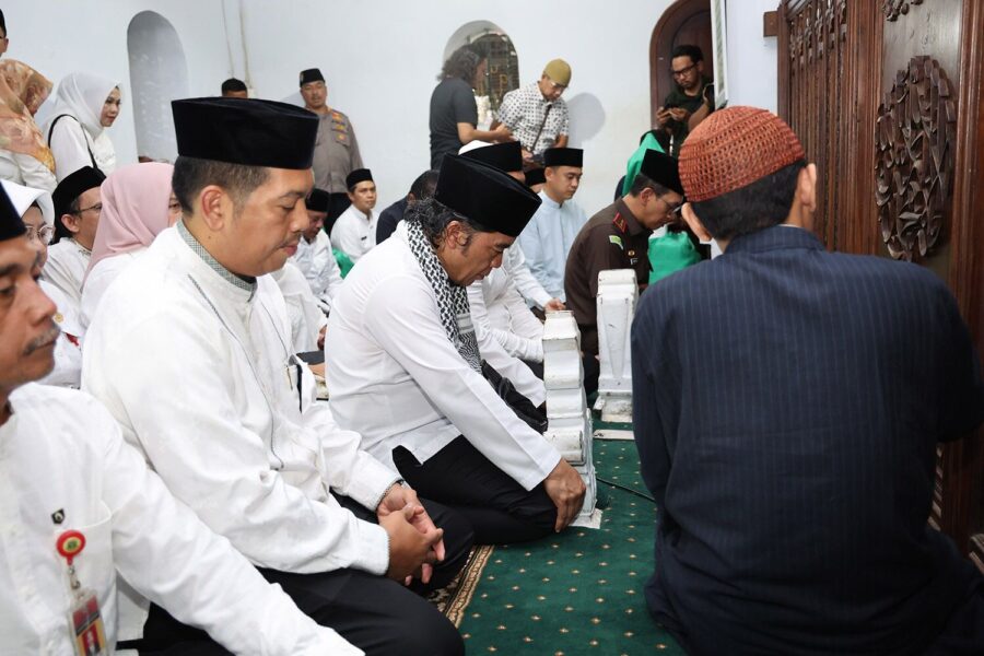 FAJARLAMPUNG.COM, Serang – Penjabat (Pj) Gubernur Banten Al Muktabar melakukan ziarah ke makam Sultan Maulana Hasanuddin di Komplek Masjid Agung Kesultanan Banten, Kecamatan Kasemen, Kota Serang, Kamis (3/10/2024). Al Muktabar melakukan ziarah bersama jajaran Forum Koordinasi Pimpinan Daerah (Forkopimda) Provinsi Banten beserta Kepala OPD dilingkungan Pemprov Banten.