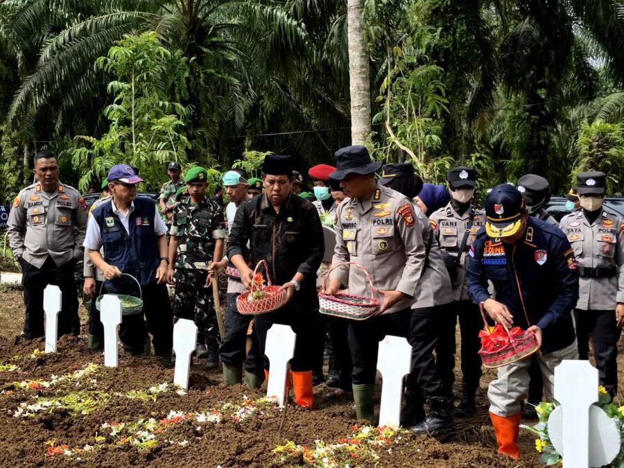 Selanjutnya, pada pukul 13.30 WIB, pemakaman massal dilaksanakan di TPU Kampung Baru, Nagari Persiapan Sei Jaring, ditutup dengan doa bersama dan penaburan bunga.