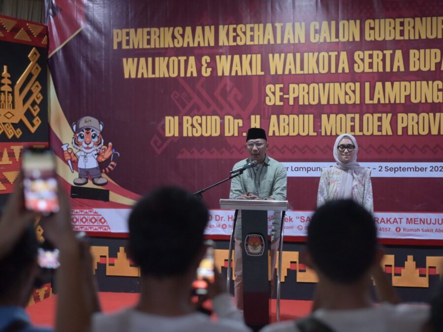 FAJARLAMPUNG.COM, Bandar Lampung – Pasangan Calon Gubernur dan Wakil Gubernur Lampung, Rahmat Mirzani Djausal dan dr. Jihan Nurlela, mengikuti serangkaian pemeriksaan kesehatan jasmani di RSUD Dr. H. Abdul Moeloek, Bandarlampung, pada Minggu (1/9) pukul 08.00 hingga pukul 19.30 WIB.