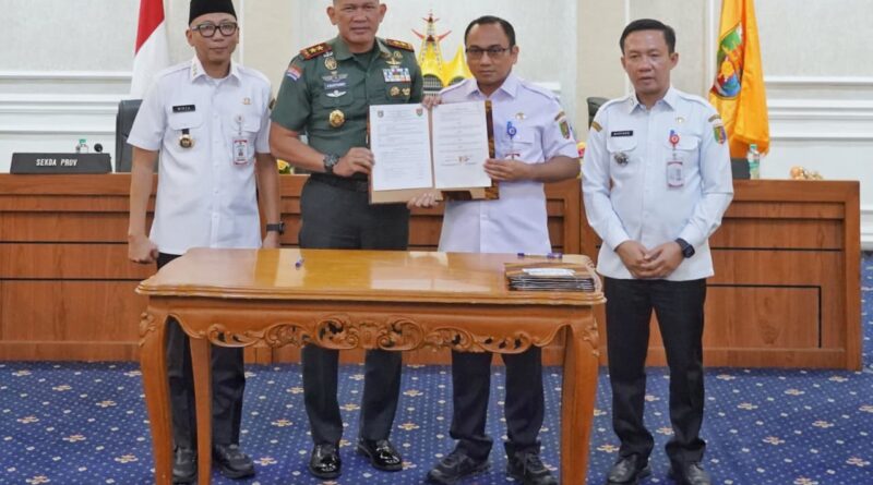 Penandatanganan dilakulan oleh Plt. Badan Pengelolaan Keuangan dan Aset Daerah (BPKAD) Provinsi Lampung, Nurul Fajri, Pangdam XXI/Radin Inten Mayjen Kristomei Sianturi, Danrem 043/Garuda Hitam Brigjen Haryantana dan perwakilan dari unsur TNI dan Polri.