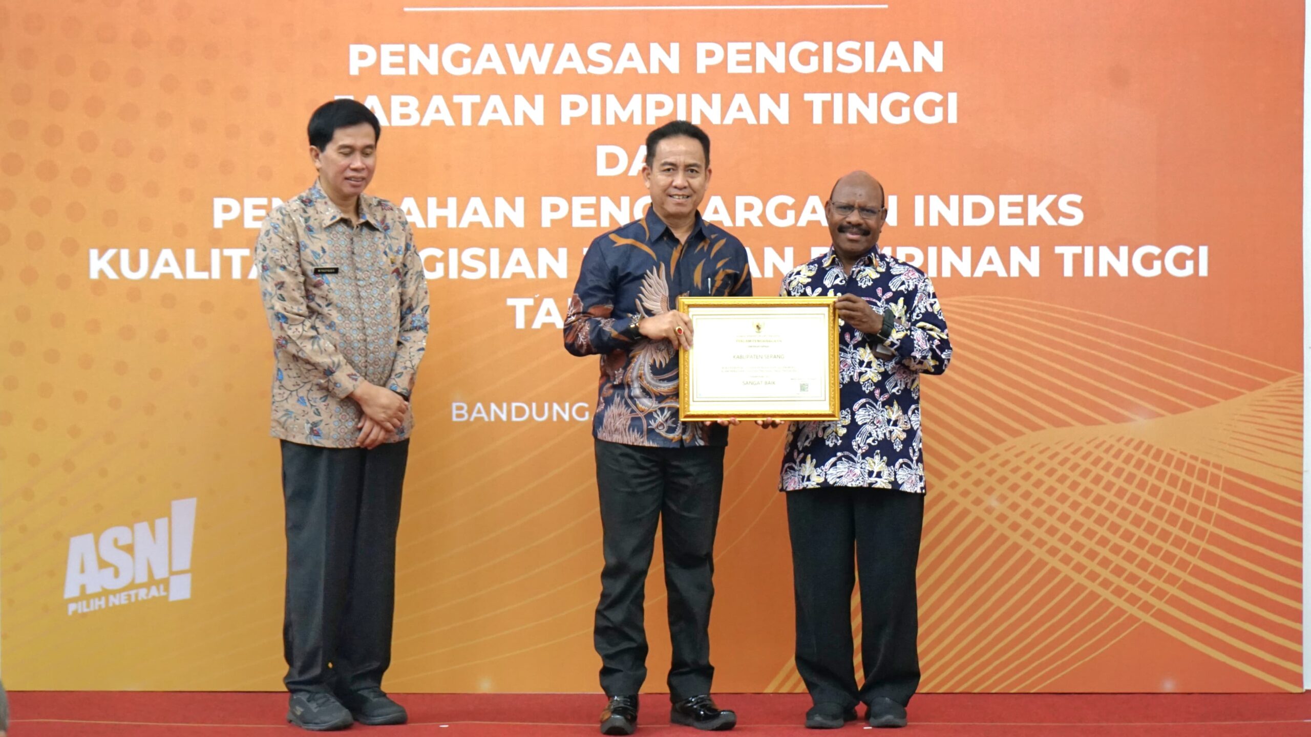 FAJARLAMPUNG.COM – Bandung, Pemerintah Kabupaten (Pemkab) Serang kembali meraih penghargaan  dari Komisi Aparatur Sipil Negara (KASN) Republik Indonesia. Penghargaan diberikan atas kinerja Pemkab Serang dalam proses pengisian Jabatan Pimpinan Tinggi (JPT) Pratama.